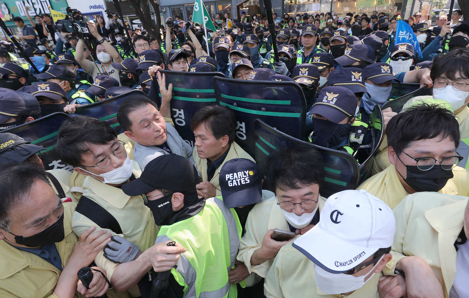 A Yonhap hírügynökség jelentése szerint a rendőrség a mintegy 30 percig tartó állóháború során végül elkezdte fizikailag eltávolítani a tisztviselőket, hogy utat engedjenek a szervezők teherautóinak a fesztivál helyszínére való behajtáshoz és a munkálatok megkezdéséhez.