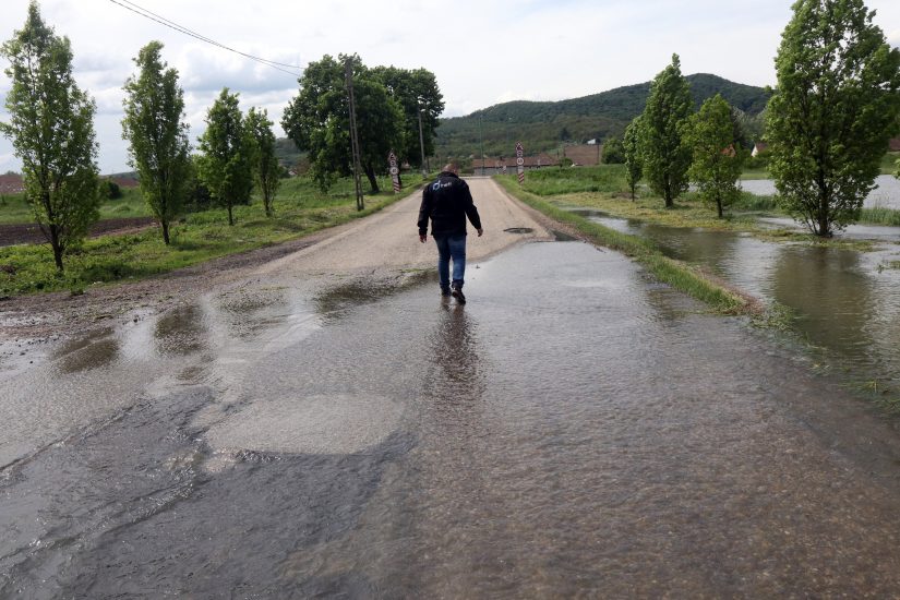 „Azt vettük észre, hogy ezek az árkok teljesen megteltek és a fölső oldalról elindult a víz, és utána egészen az útig elöntött bennünket” – mondta Takács Péter.