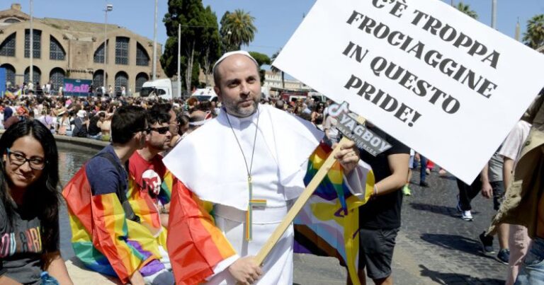 Nem meglepő a vallásgyalázás az aberráltaktól – Ferenc pápát gúnyolják a római Prideon