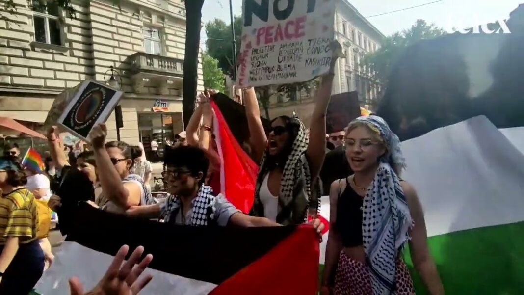 Volt azonban a buzivonagláson egy olyan jelenet, amely még annál is abszurdabb, hogy a homokosok felvonulhatnak a „nemzeti” Magyarországon. A meneten ugyanis palesztin és izraeli zászló is előkerült, jelen voltak tehát palesztinpártiak, és Izrael-barát (zsidók?) is.