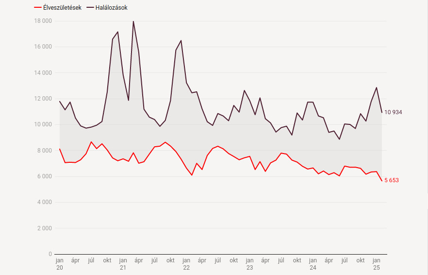 Idén februárban 5653 gyermek született, míg a halálozások száma 10 934 volt, közölte az előzetes adatokat a KSH. Mióta rögzítik az adatokat, soha nem volt olyan hónap, amikor 6000-nél kevesebben születtek volna.