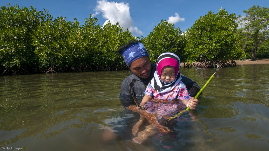 3. Indonézia trópusi tőzeglápjai veszélyeztetett orangutánok, valamint gazdaságilag fontos halfajok otthona. Emellett segítenek megelőzni az árvizeket és az aszályokat, csökkentik a helyi hőmérsékletet is. A fotón egy vízibivaly látható, amely éppen a szezonálisan kiszáradó tőzeglápban legel Bangsalban, Dél-Szumátrában