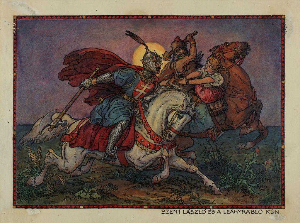 Szent László és a kun legendájának leírását a Képes Krónikából idézzük: „Aztán Boldog László herceg megpillantott egy pogányt, aki lova hátán egy szép magyar leánykát vitt. Szent László herceg tehát, abban a hitben, hogy a váradi püspök leánya, bár súlyosan meg volt sebesülve, mégis sebesen nyargalva űzőbe vette lován, amelyet Szögnek hívott. Mikor azonban már annyira volt, hogy lándzsát vethetett volna rá, nem tudta megtenni, mivel sem a maga lova nem szaladt gyorsabban, sem amannak a lova nem maradt semmit vissza, hanem körülbelül egy könyöknyi távolság volt a lándzsa és a kún háta között. Tehát szólt Szent László herceg rákiáltott a leánykára és azt mondta neki: »Szép húgom, ragadd meg a kunt az övénél fogva és ugorj a földre!« Amit meg is tett. Mikor pedig Boldog László herceg távolról lándzsát döfött volna a földön heverőbe, hogy megölje, a leányka igen kérte, hogy ne bántsa, hanem, hogy elbocsássa. Amire nézve megjegyzendő, hogy hűség asszonynépben nincsen, mivel talán biz’ fajtalanságra áhítozva akarta őt megmenteni. A szent herceg pedig sokáig küzdött véle, inát elvágván, megölte őt.”