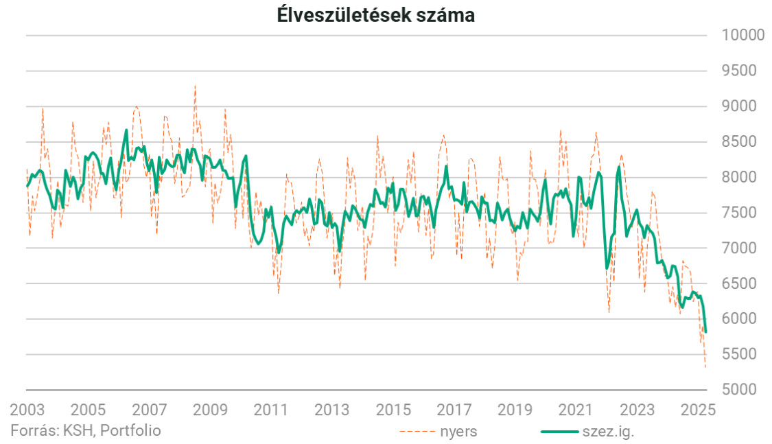 Kiderült a tájékoztatóból az is, hogy 10 811 fő vesztette életét, 7,8 százalékkal, 910-zel kevesebb az egy évvel korábbinál. A természetes fogyás így a 2024. decemberi 5392-vel szemben 4791 fő volt. Ami az egész évet illeti, 2025-ben az elhunytak becsült száma 124 200 volt, 2,6 százalékkal, 3270-nel kevesebb az egy évvel korábbinál.