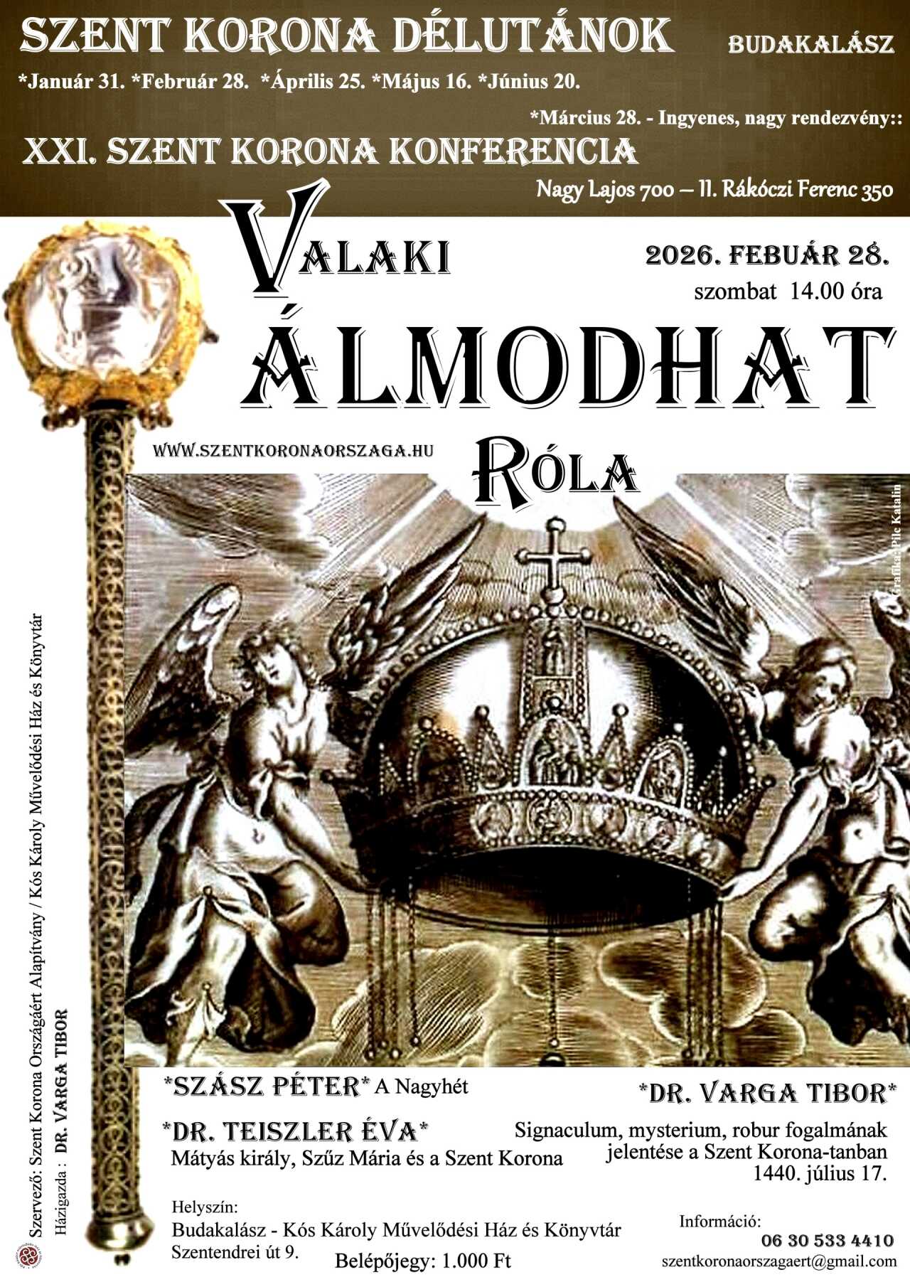 – így vezeti fel dr. Varga Tibor a Szent Korona Délutánok tematikáját, a történettel pedig a rendezvények címére is magyarázatot kapunk, miszerint “Valaki álmodhat róla”. A Szent Korona Délutánok mellett a XXI. Szent Korona Konferencia is meghirdetésre került. Alább további részletek: