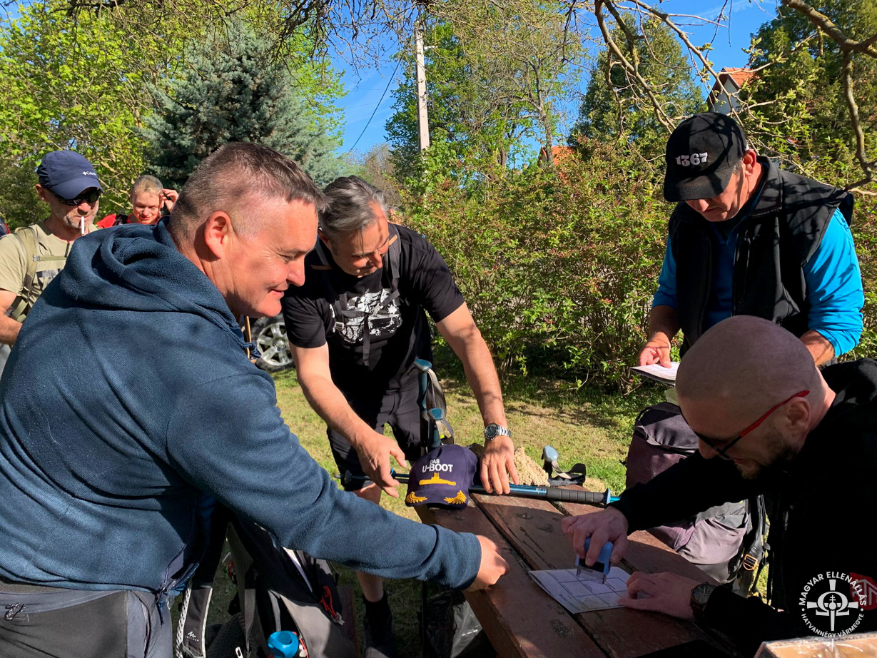 Az első ellenőrzőpont Bakonykútiban várta a túrázókat, ahol a Mi Hazánk Mozgalom móri szervezete fogadta az érkezőket. Itt még mindenki lendületesen, tele energiával haladt tovább.