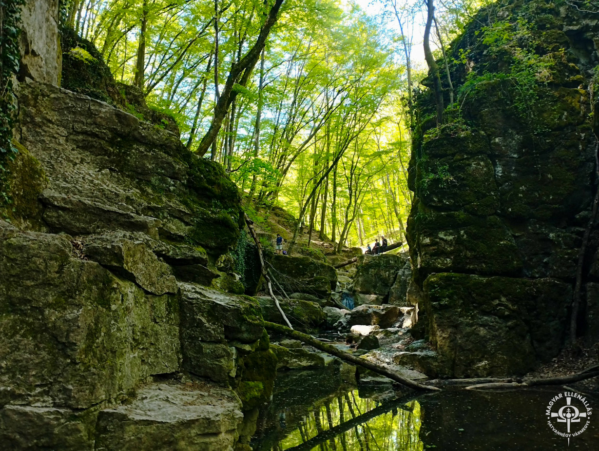 A következő kiemelt állomás a Római-fürdő (Bakonynána) volt, ahol a szurdokvölgy leglátványosabb eleme, a vízesés nyújtott maradandó élményt. A közelben, a Vadalmás-forrás mellett a Magyar Önvédelmi Mozgalom ellenőrzőpontja biztosította a frissítést.